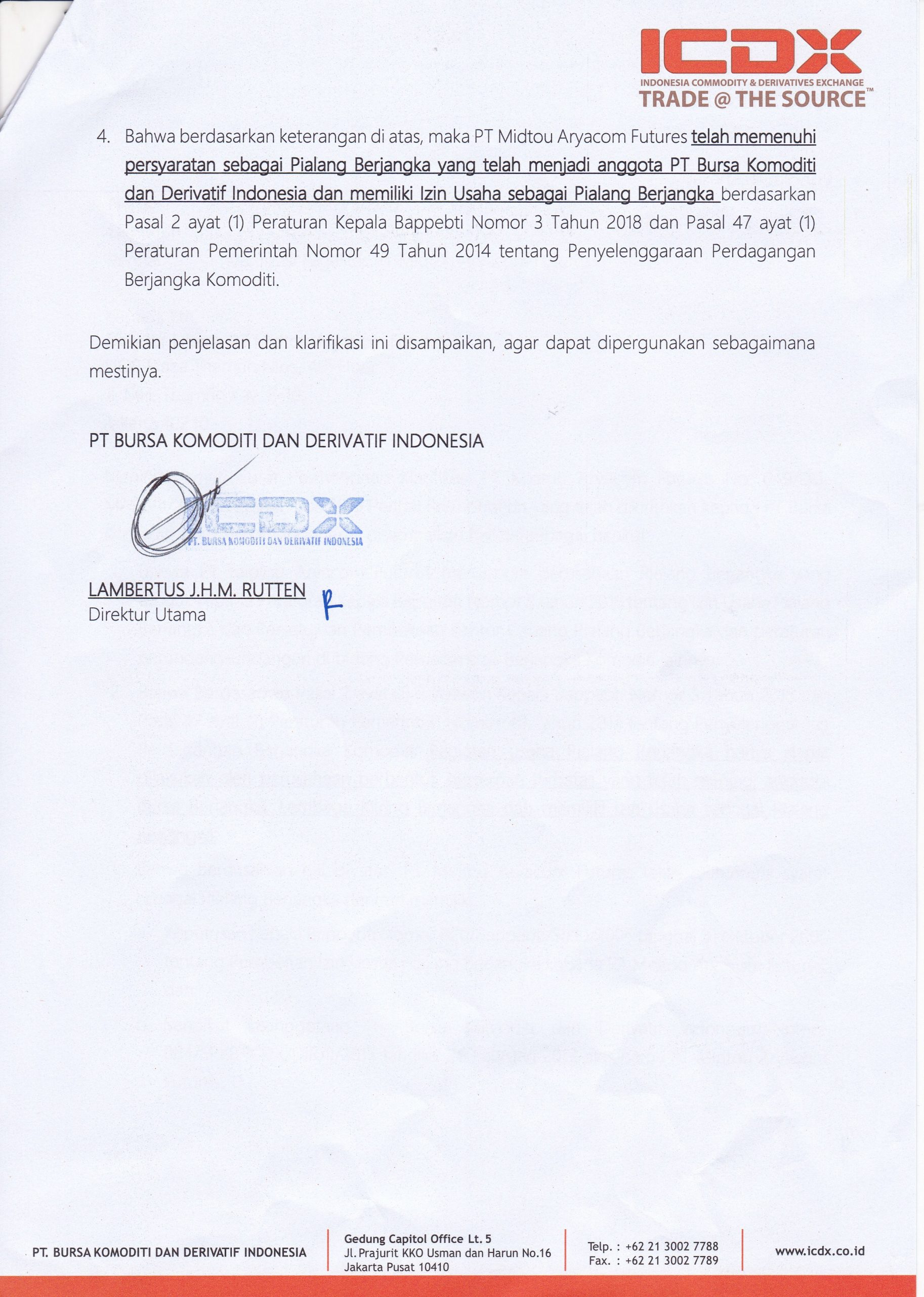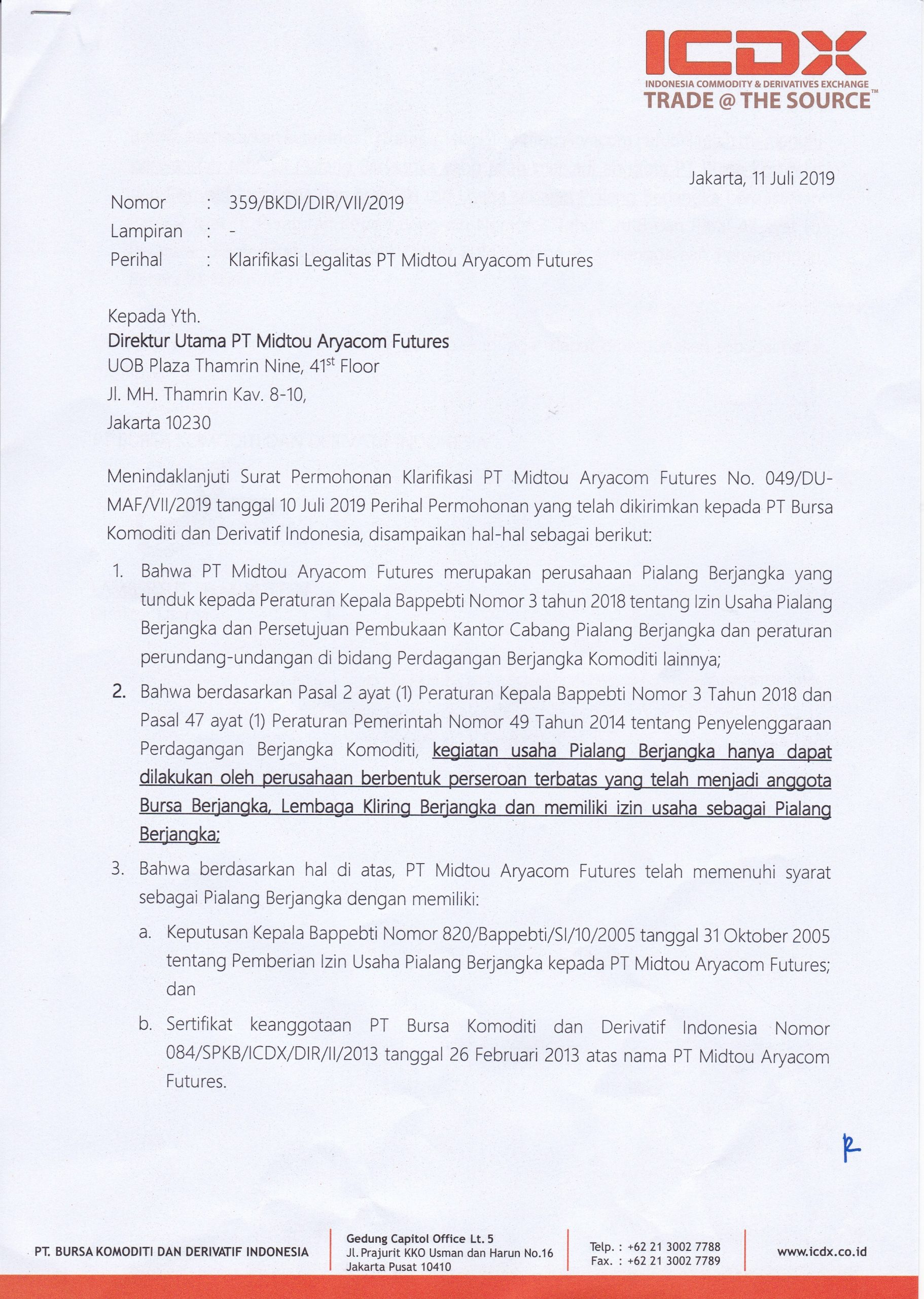 PT. Midtou Aryacom Futures adalah Anggota dari Bursa ICDX dan Kliring ICH.