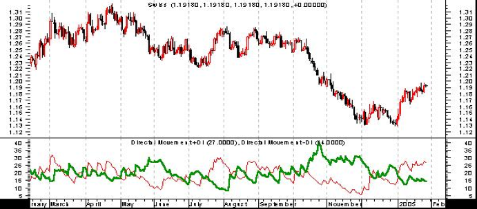 Jika kedua grafik DI + dan DI- berpotongan maka harga diperkirakan akan berbalik / rebound.