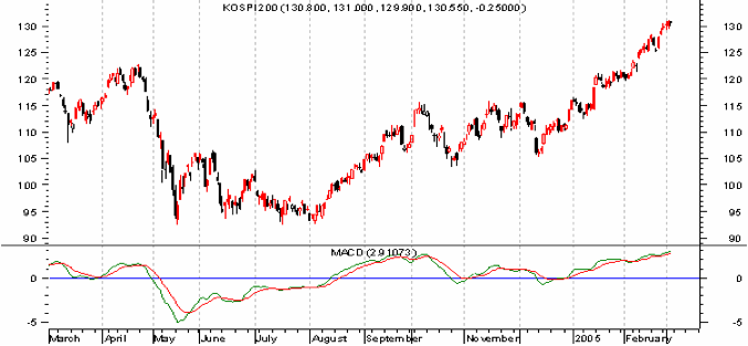 – Garis merah : convergence dan divergence antara 2 Moving Average