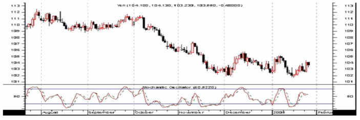 Indikator ini menunjukkan apakah harga sudah mencapai kondisi overbought ( jenuh beli ) atau oversold ( jenuh jual ). Jika grafik telah menunjukkan bahwa harga telah overbought, maka adalah baik untuk melakukan sell, sebaliknya jika grafik menunjukkan bahwa harga telah oversold, maka adalah baik untuk melakukan buy.